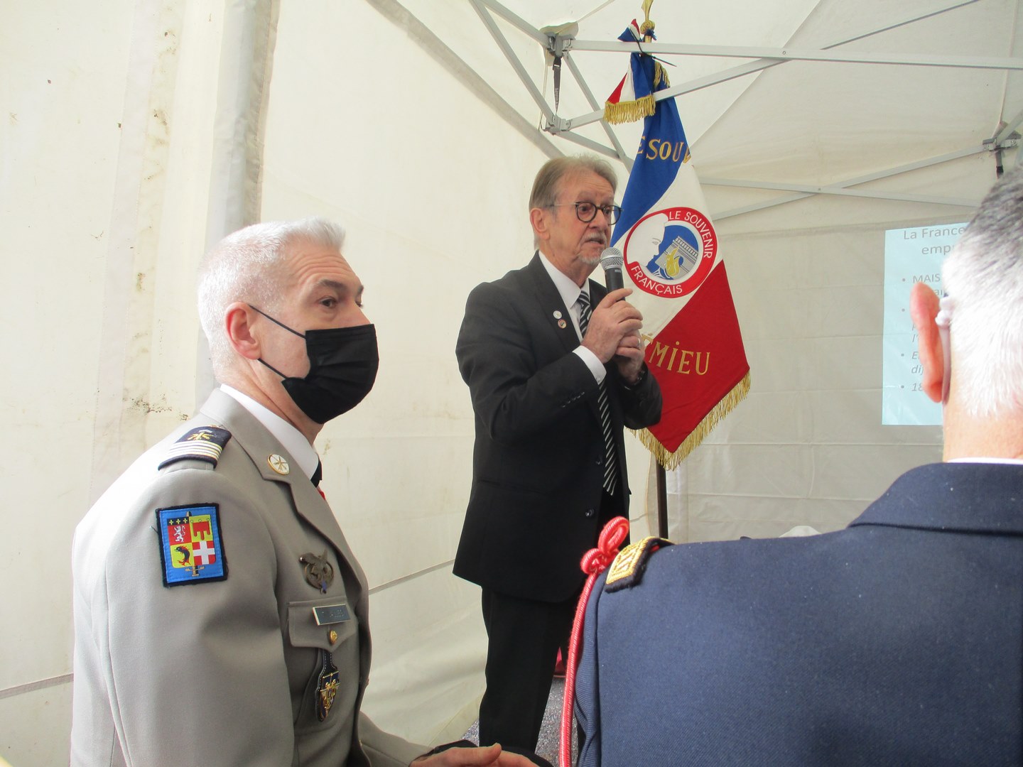 Le colonel Bardot, président du comité cantonal du Souvenir Français de Crémieu, en maitre de cérémonie, a accueilli les personnalités, civiles et militaires, Madame Cécile Cléry-Barraud, directrice de l'ONAC VG de l'isère, le Souvenir Français, les associations d'anciens combattants, les portes drapeaux...