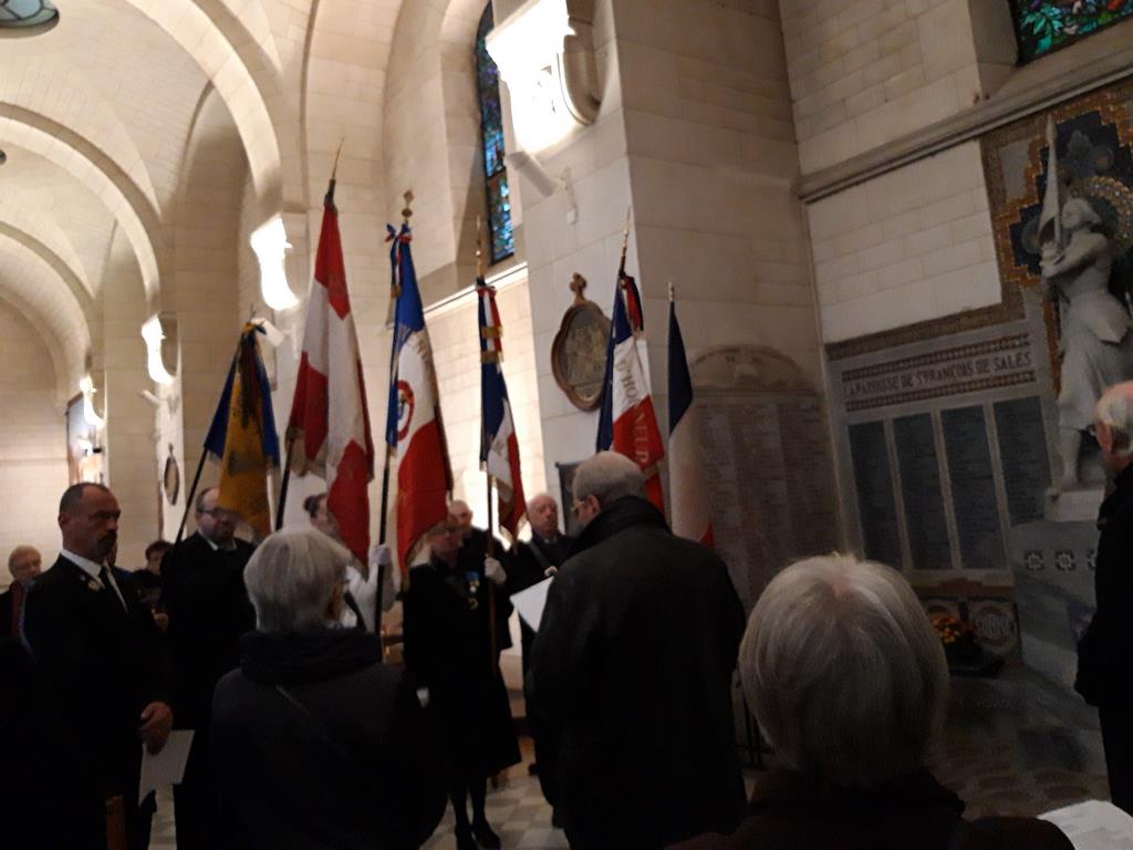 "Dimanche 18 novembre 2018, le Foyer Savoyard de Paris organisait sa cérémonie annuelle du 11 novembre en l'église Saint-François de Sales, 17ème arrondissement, devant le monument aux Savoyards Morts pour France. A l'invitation de Monsieur VALLET, président du Foyer, Frédéric MARESCHAL, délégué général de Savoie, était présent, accompagné de Sylvie MARESCHAL, porte-drapeau du Comité Chambéry-Cognin. Une vingtaine de Savoyards de Paris était présent ainsi que 4 autres porte-drapeaux dont Madame AVENIERE avec le drapeau de l'Ordre National du Mérite.La cérémonie a commencée par les Allobroges chanté par l'assistance et accompagné par Monsieur SERGENT, professeur de trompette. Après le discours de Monsieur VALLET rappelant qu'il s'agissait de la 86ème cérémonie organisé par le Foyer Savoyard de Paris, Frédéric MARESCHAL a lu le texte du Président de la République. S'en sont suivi le dépôt de 2 gerbes, l'une du Souvenir Français de Savoie, l'autre du Foyer, puis la minute de silence. La cérémonie s'est achevée par une Marseillaise également accompagnée par le trompettiste.La messe qui a suivi était également en hommage aux Savoyards Morts pour la France.Un verre de l'Amitié, puis un repas au restaurant ont conclus cette invitation. Monsieur VALLET et l'ensemble des membres du Foyer ont fortement apprécié la présence de Savoyards et ont d'ores et déjà réitéré leur invitation pour l'année prochaine."