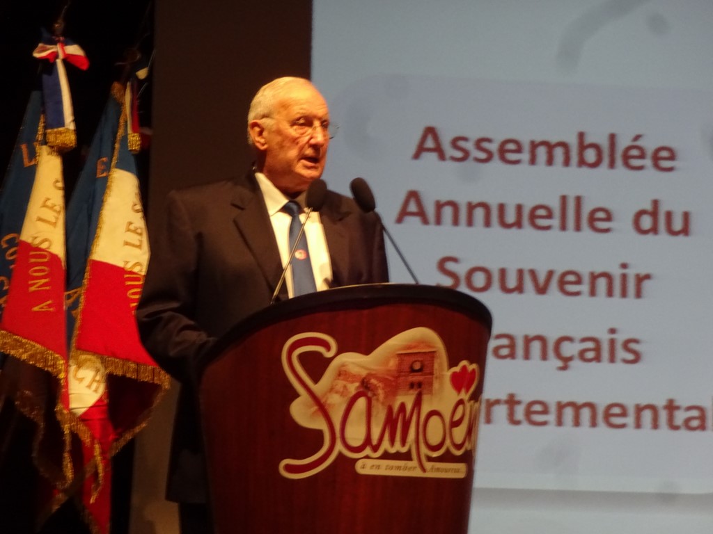 Michel Flahaut, délégué général de la Haute Savoie, a remercié les personnalités présentes, avant de présenter le rapport moral puis le rapport financier de la délégation. S’en sont suivi deux remises de récompenses, puis tout le monde s’est dirigé, soit par le petit train touristique, soit en voiture vers le centre de Samoens pour rejoindre, en cortège, le monument aux morts pour le dépôt de gerbes.